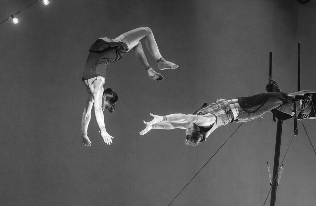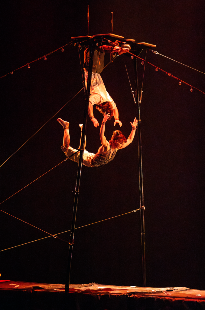 C’est dans la rencontre entre le langage performatif et organique du cirque et une écriture musicale radicale et inspirée que naît une émotion rare — une vibration enfouie, insoupçonnée, qui nous sidère, nous élève, nous relie.